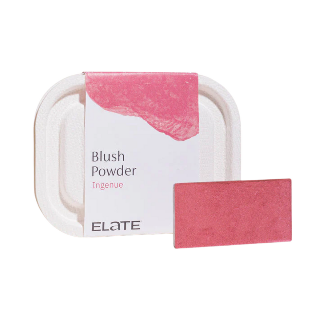 Packaged minimally in compostable bagasse cases with recyclable pans that fit into Elate’s **Refillable Compacts and Palettes**.