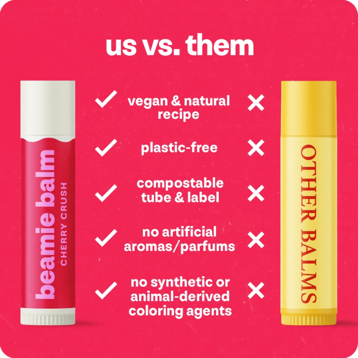 Cherry Crush Lip Balm by Beamie Balm brings back the joy of your childhood lip balm collection—reimagined with clean ingredients and planet-first packaging. Smooth, lightly sweet, and deeply nourishing, this balm delivers long-lasting hydration using only natural, fruit-based oils and plant waxes.