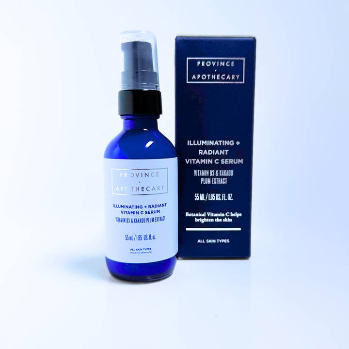 Province Apothecary’s Illuminating + Radiant Vitamin C Serum is a brightening, water-based treatment designed to target dark spots, boost collagen production, and deeply hydrate for luminous, even-toned skin. This advanced botanical blend merges Ayurvedic wisdom with modern science—delivering antioxidant protection, improved firmness, and a long-lasting glow.