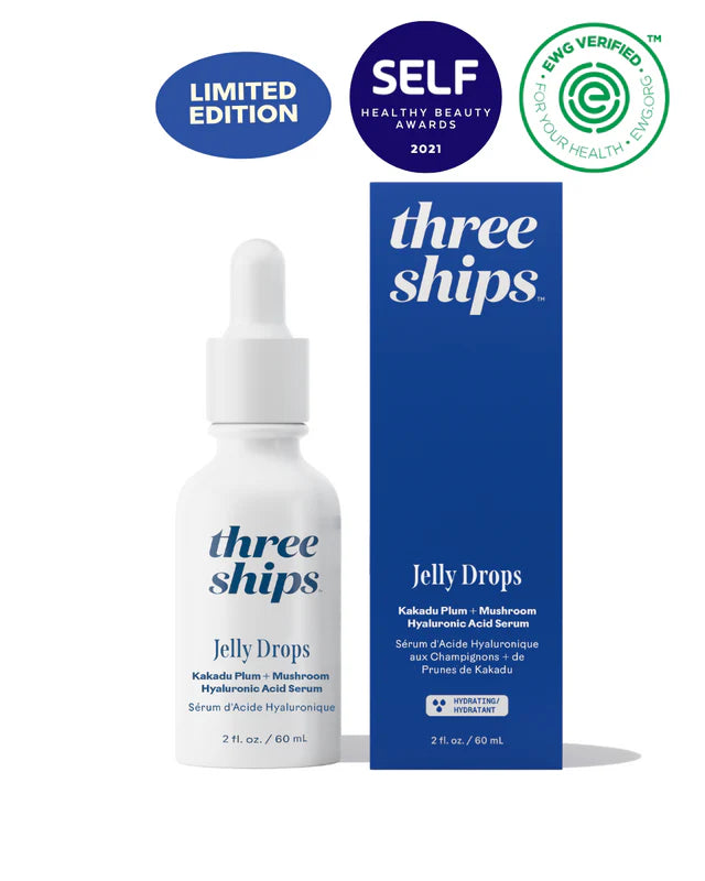 The Three Ships Jelly Drops™ Kakadu Plum + Mushroom Hyaluronic Acid Serum blends a jelly-soft texture with high-performance botanicals to deeply hydrate and brighten. Powered by tremella mushroom (a next-gen hyaluronic substitute) and Kakadu plum (nature’s vitamin C powerhouse), this serum delivers luminous, plumped skin—without heaviness or overwhelm. Ideal for all skin types, especially dull or dehydrated complexions.