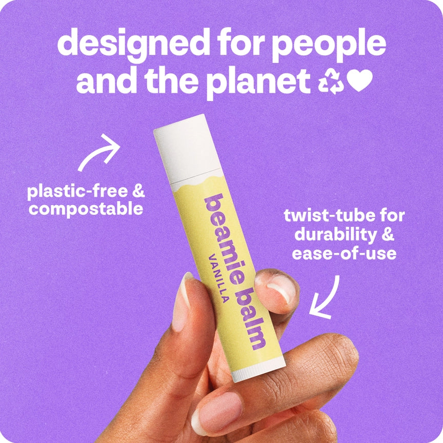 Beamie Lip Balms bring back the joy of your childhood balm collection—now reimagined to be 100% natural, vegan, and plastic-free. Packed with fruit-based emollients and antioxidants, these balms deliver long-lasting hydration with a cheerful twist. With bright packaging and a durable twist-up design, Beamie is as fun as it is functional.